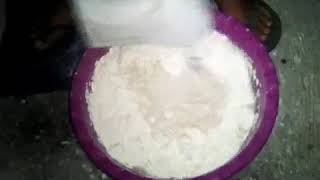 Bahan bahan: - Tepung terigu [apa saja].... 1 Kg - Air putih +/- 500ml [boleh ditambah kalo kurang]. - Telor ayam [boleh pakai,boleh tidak] .. 1 butir. Tepung di taruh di baskom, bikin lobang...
